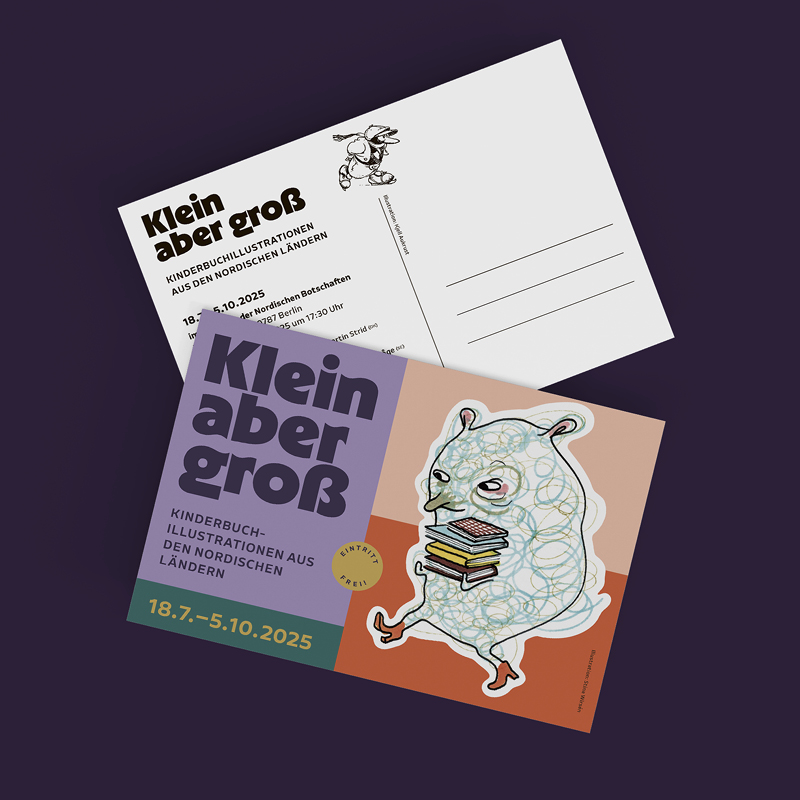 We created the visual identity and graphic design for Klein aber Groß, an exhibition highlighting children’s book illustrations from across the Nordic countries. The exhibition was presented at Felleshus, the cultural centre of the Nordic embassies in Berlin.